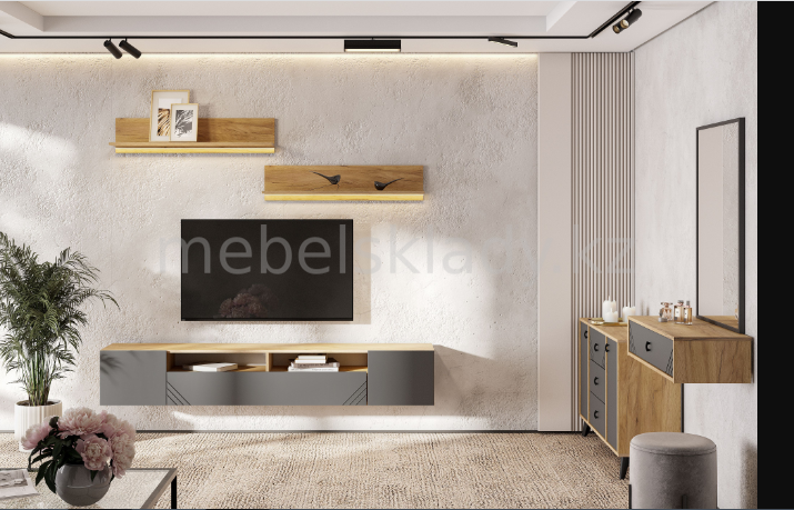 >Байкал, Тумба для телевидеоаппаратуры, Дуб Золотой/Белый матовый SV, СВ мебель