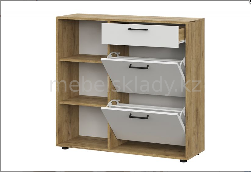 ОБ 6, Тумба для обуви (3Д1Я), Дуб Золотой/Белый Шагрень, СВ Мебель